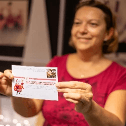 Facultatif (mais gratuit) : sur notre site, vos employés rédigent des petits messages à l'attention des enfants : nous les imprimons sur de VRAIES cartes et nous les distribuons le Soir de Noël avec les jouets